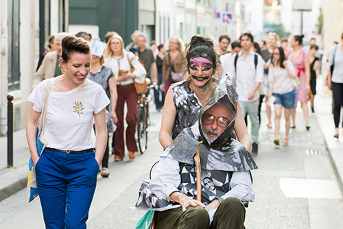 Les performances épiques et débridées de l’artiste britannique, aux personnages parés de costumes et accessoires faits main, interrogent les notions d’utopie, de collectif et d’improvisation. Entre carnaval, littérature et théâtre de rue, les pièces font référence aussi bien à des traditions vernaculaires, qu’à des figures clés des cultures contemporaines.