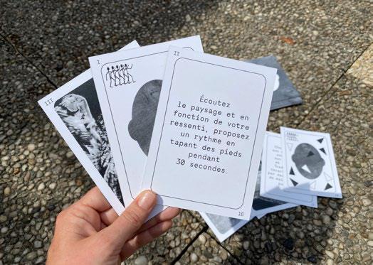 Marche sonore, casques, 30 min (durée de la marche) ;