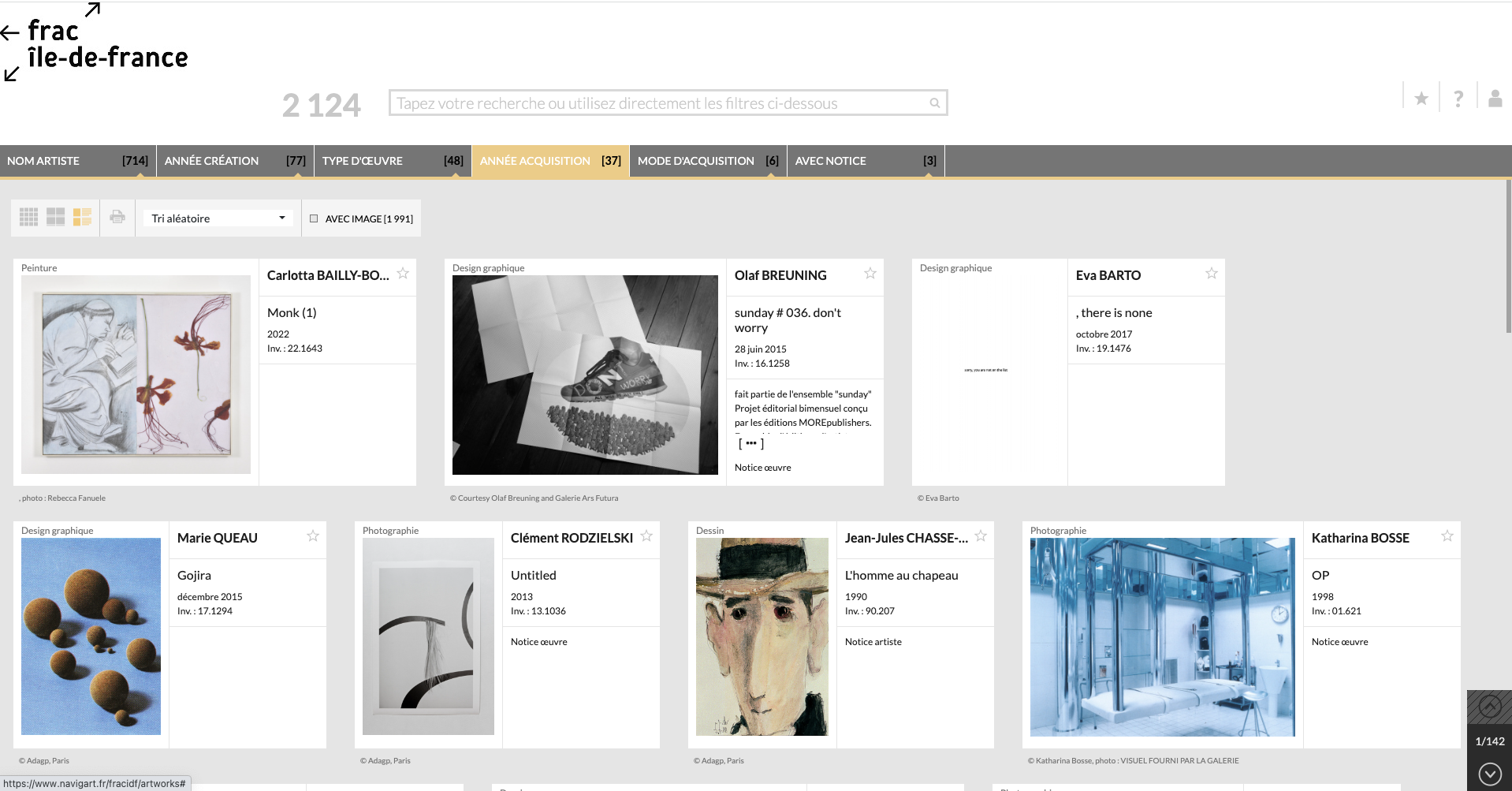 Cette base de données inclut du contenu sur les œuvres elles-mêmes (médium, acquisition, expositions, notices), mais aussi sur les artistes, ainsi qu’une section bibliographique.