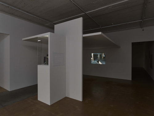 In an area – the museum’s fourth floor – completely plunged in darkness, the exhibition presents a set of works which all share in common the fact that they give glimpses of certain forms of reality whose meaning tends irremediably to elude us. Be it a message written on a wall before being deliberately erased (Sans titre, Jimmy Robert), a series of flat wooden crates containing objects which we shall never have access to (Sans titre, Maurice Blaussyld), or a set of images visible only for a split second as they are swept by a beam of light (Polka Dot, Mark Greffiaud), what is regularly at issue is an approach, clues, and signs that are more than evocative, but which never totally reveal what they nevertheless seem to want to show us.