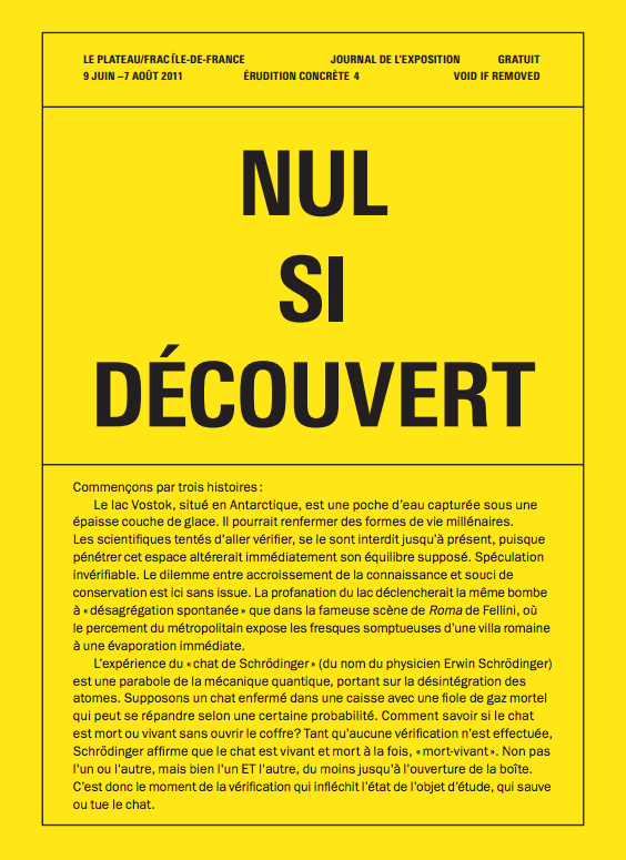 Journal-catalogue of the exhibition Void if Removed, at frac île-de-france, le plateau (9 June – 7 August 2011)