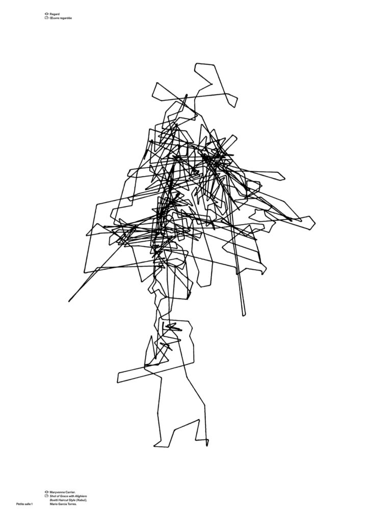 After the end of the exhibition, the drawings – which reproduced the gazes of the participants watching the artworks – were executed in wool thread and exhibited in the galleries in lieu of the works they documented.