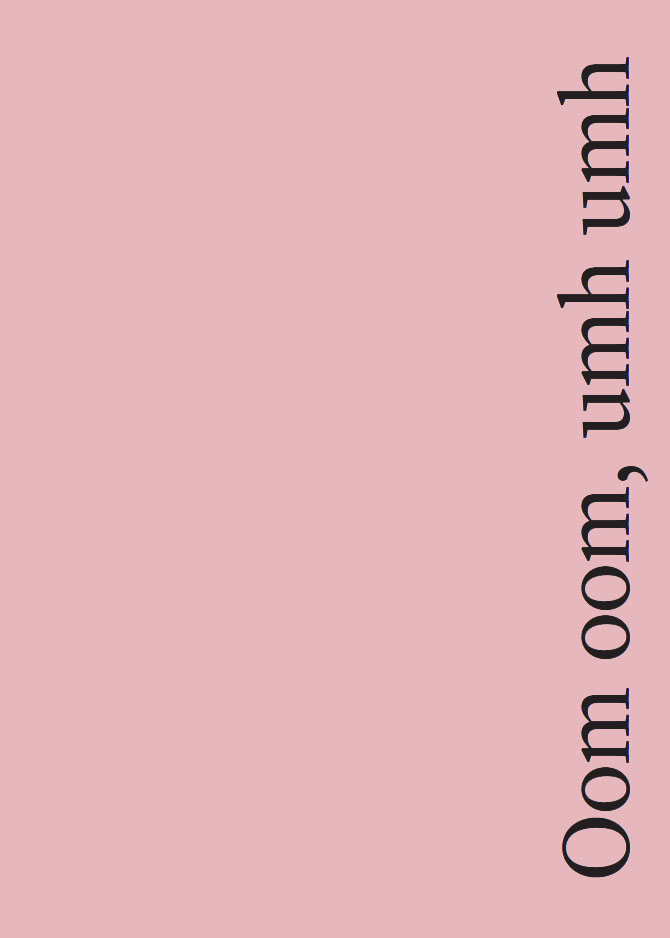 In response to the essay Boom boom, run run of which Pierre Paulin is the author, Oom oom, umh umh is a compilation of texts commissioned from François Aubart, Eva Barto, Maxime Boidy, Alexis Guillier, Lin Tan, Lætitia Paviani.