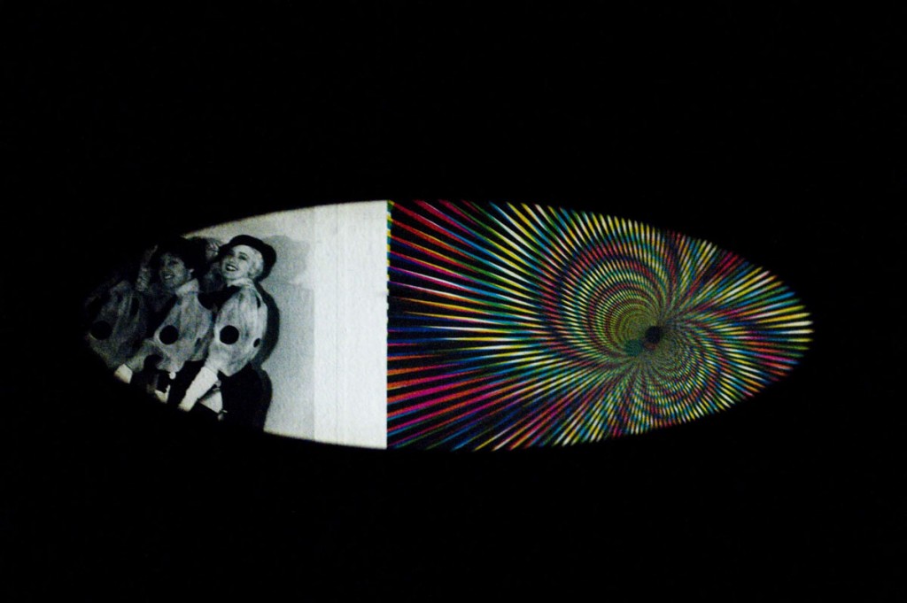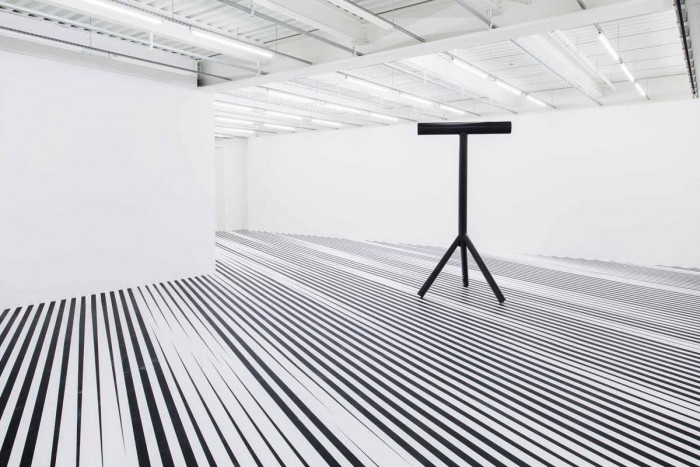 Circumvolutions, cycles and rotations: another feature of the show lies in the fact of presenting a number of pieces very formally incorporating the figure of the circle and the loop. From the gesture of bypassing which is the basis of Ulla von Brandenburg’s film (Around, 2005)—in a loop–, to the 360o revolutions adopted by both Pierre Bismuth’s and Philippe Decrauzat’s pieces, this figure and its many different forms stake out the exhibition like so many footholds in the space.