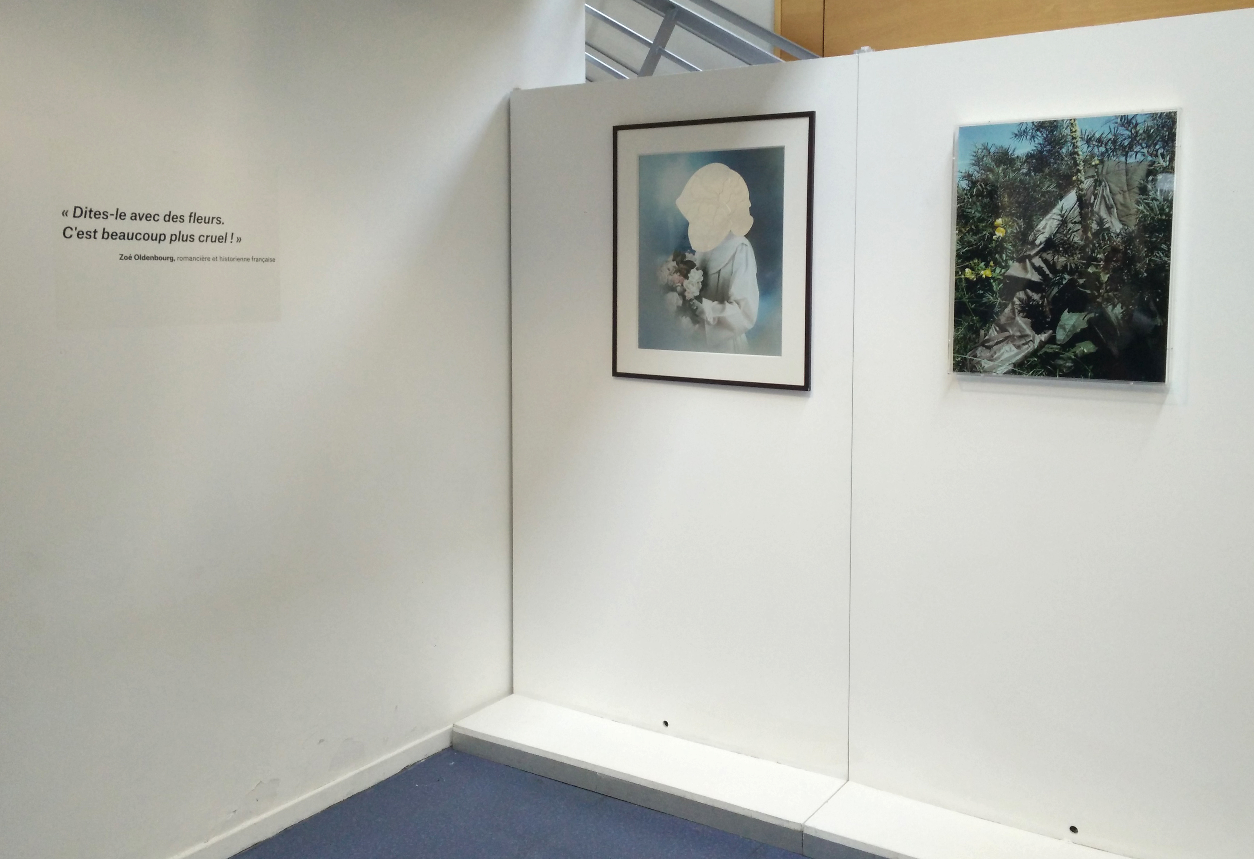 This exhibition breaks away from simple figurative representation. The flowers are meaningful, but do not appear to be the key element in the image. The artists use them to highlight incurred and reflective themes. Flowers are alternately poetic, symbolic or political and convey their hidden meanings.