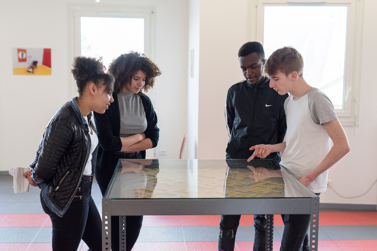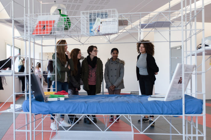 In 2010, the frac île-de-france started a partnership with the high school Jean Vilar, in Meaux. This school venue, has a gallery, which allows pupils who follows the education program “heritage” to select works in the frac île-de-france’s selection, propose as part of the program Jeux de language (Word Plays), conceived by the education departement of frac île-de-france. They can curate the exhibition and device its communication in relation to other pupils of the high school. Impressions introduces works which take on multiple printed forms – magazine, posters, screen printing and book presentation devices.