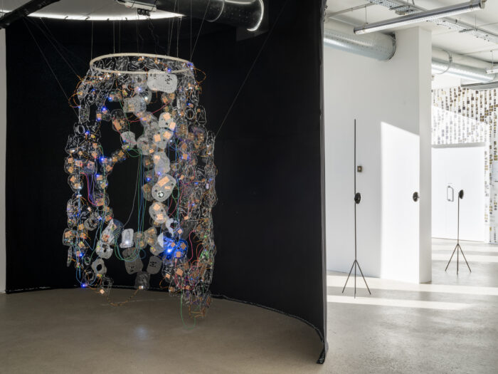 Ces œuvres nous plongent dans un « méta-monde », un espace au-delà de nos perceptions immédiates, où s’entrelacent technologie, écologie et exploration des nouveaux médias. Les œuvres de la collection du Frac font écho à ces univers, dans une discussion transgénérationnelle.