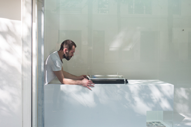 Formé à la fois aux arts plastiques et aux arts appliqués, Xavier Antin s’intéresse aussi bien à la propriété des images, qu’à leur flux, et aux outils technologiques permettant de les générer et de les faire circuler. Son nouveau projet comprend différentes pièces traduisant le caractère insaisissable des images. Le dispositif de la vitrine, qui montre tout en empêchant l’accès physique, induit naturellement une certaine distance y faisant écho.