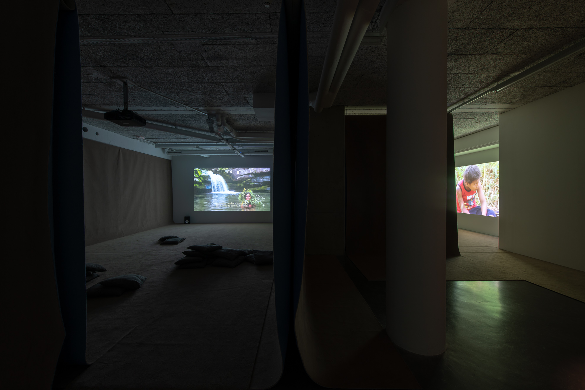 Whether a strange journey to Tahiti following in Gauguin’s footsteps, the portrait of a solitary recluse in the middle of the woods philosophising about the origin and fate of mankind, children learning about fauna in a forest setting, a quasi-mythical scene showing a group of men, women and children bathing in a river, portraits of four women defying conventional lifestyles, or recordings and visions of healing ceremonies in the Peruvian Amazon, the exhibition La Rivière m’a dit presents a series of works within which nature occupies a prominent place in a variety of ways.