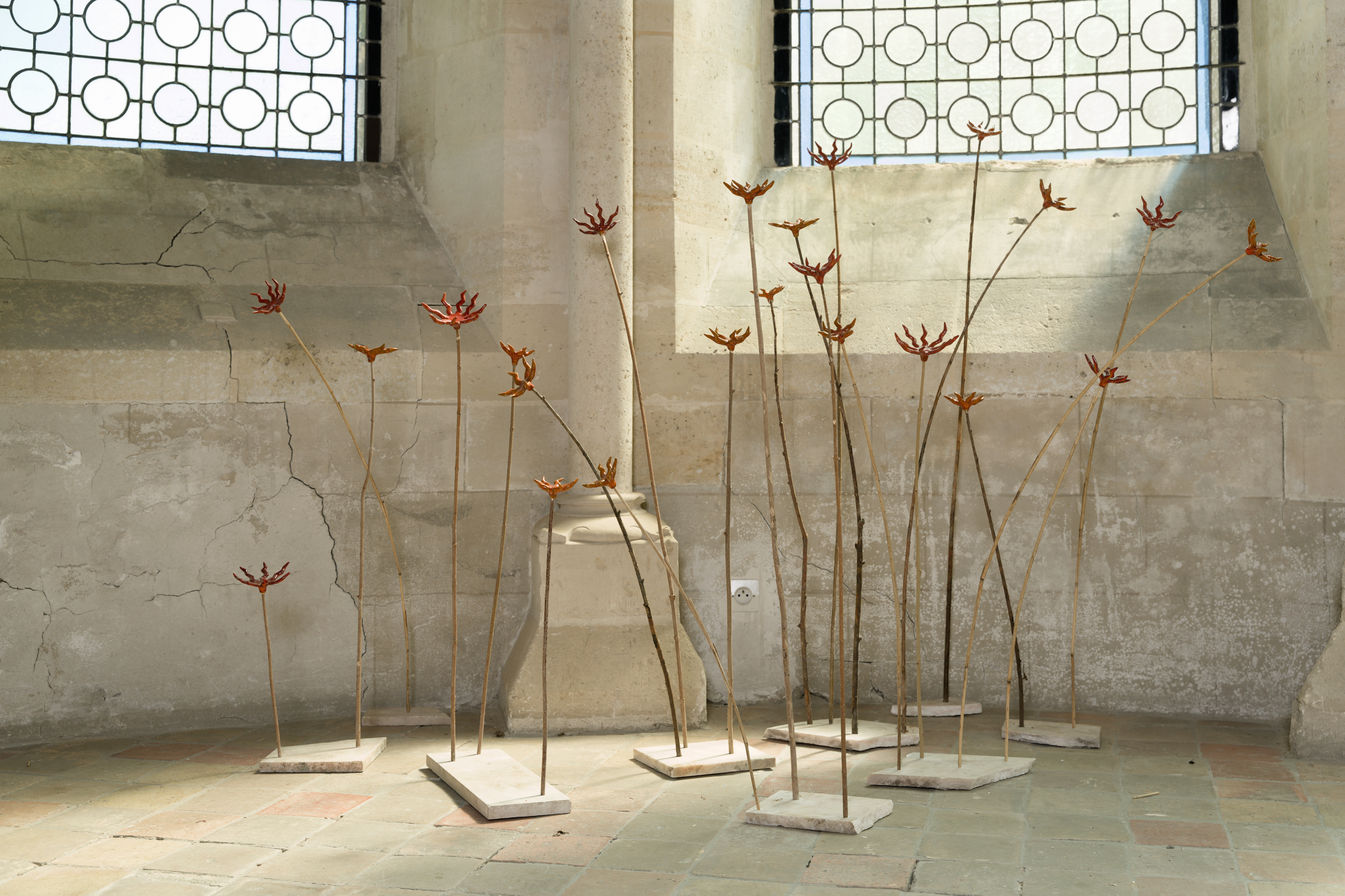 This exhibition is rooted in medieval narratives, marked by the development of the cult of the saints and the consolidation of a written tradition. It offers contemporary echoes that extend the spiritual aspirations emerging at that time. They complete the alphabet of holy figures enabling intercession, that is to say, connection with the divine. The dialogue between the works questions the persistence of iconographic traditions. Some sketch out a form of medievalism that interprets an era and its rituals from century to century, with varying degrees of fantasy. Others break with this tradition, affirming a new artistic tradition.