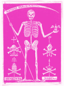 The subject ‘remember you will die’ traverses art and literature encompassing tragedy and parody according to changes in society and customs, religious convictions as well as scientific discoveries.