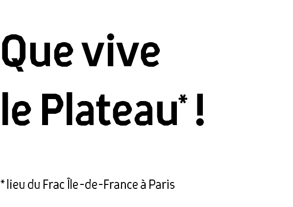 Avec Le Plateau, le Frac Île-de-France est implanté à Paris depuis 2002 et s’est affirmé comme l’une des institutions majeures de la création contemporaine en France. Multipliant ses activités dans toute la Région, il a su à travers Le Plateau changer le paysage de l’art contemporain à Paris même, grâce au soutien de la Ville de Paris, de l’Etat et de la Région Île-de-France. Supprimer votre soutien au Plateau, n’est-ce pas prendre le risque de le voir disparaître ?