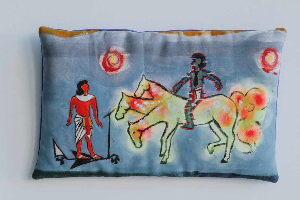 From 2019 to 2021, Laura Burucoa led a co-creation residency at the CAC de Brétigny. During these two years, every Thursday and Friday, she opened her studio to students from the nearby high school, as and when they met her and had free time. In a DIY radio studio, they discussed stories and current affairs, the better to speculate on more or less immediate futures. Some of these narratives gave shape to textile paintings, currently on display at Les Réserves. These pieces were co-created with Sara Bouazzaoui, Yasmine Kicha and Shveta Lebonheur, whom we met during the residency, and will be unhooked from the wall and activated during this performance.