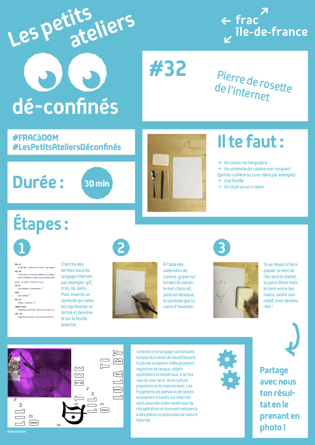Sur Facebook : @Fracidf / Instagram : fraciledefrance / Twitter : @FracIdF #FRACàDOM & #LesPetitsAteliersConfinés