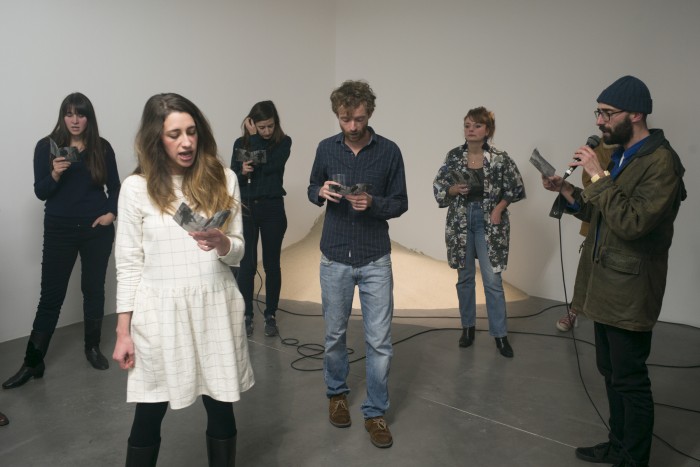 For L’Homme aux cent yeux (revue), Lola Gonzàlez proposes to organise a public gathering that will take on the guise of a secret meeting. The public will be invited to participate in a succession of several ritual situations. As is often the case in the artist’s work, groups are seen as entities capable of taking action and sustaining utopias toward which we must urgently turn, in this case ‘for real’ rather than via the video medium alone. After the show Qui boira de ce vin-là, boira le sang des copains presented on the occasion of the Hors-Pistes Festival at the Centre Pompidou in 2014, this is the second time the artist ventures into the field of performance with this original creation.