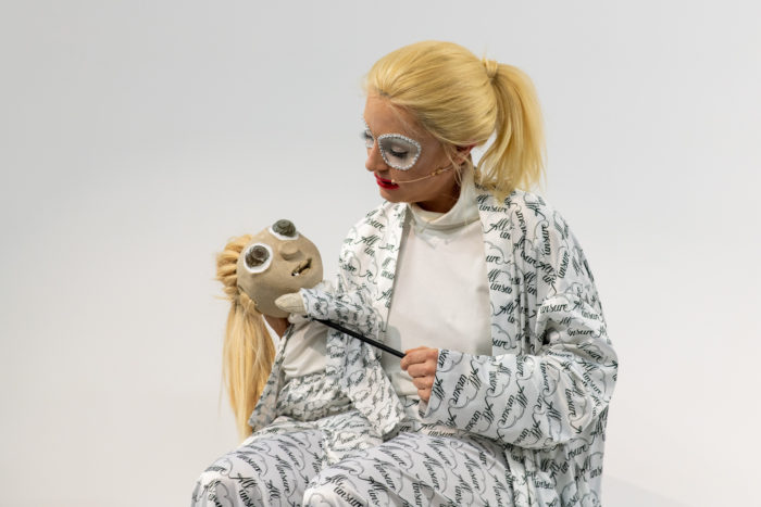 Les vidéos et performances d’Anouchka Oler peuvent être perçues comme des tentatives désespérées pour affecter et comprendre l’Autre -et donc l’entité du monde. Mêlant tours de magie, stand-up comedy et philosophie expérimentale, sa pratique jubilatoire consiste à composer une communauté d’êtres interdépendants semblerait-il en proie à des crises existentielles perpétuelles. Invitées à prendre part à des récits spéculatifs, les participantes sont amenées à débattre de sujets comme les affects, la vie collective et privée, l’environnement matériel et leurs interactions. L’opportunité d’examiner ces sujets est donnée tant à des humains qu’à des objets ou sculptures à qui il est donné une voix, une humeur spécifique ainsi qu’un point de vue particulier. Ces caractéristiques tout autant que la matérialité de la sculpture participeront à la résolution de l’intrigue en fabriquant des dénouements hypothétiques qui semblent alors plus satisfaisant que la réalité.