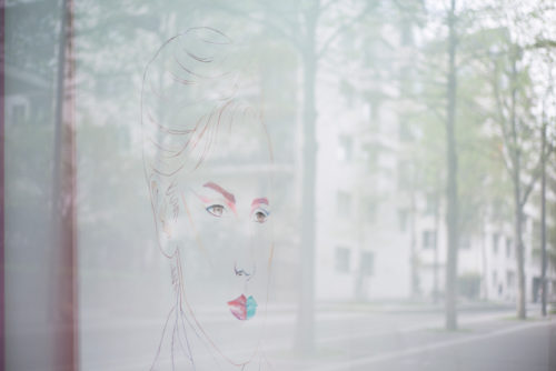 En vitrine, deux peintures sont au regard l’une de l’autre. Les deux portraits, réunis en un geste d’association de leurs différences, représentent des créatures androgynes qui nous interpellent.