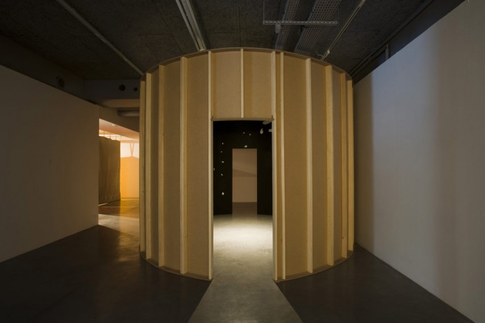 This exhibition at Le Plateau also offers works created specifically for the occasion, notably the 16mm film Singspiel, shot in february 2009 at Le Corbusier’s Villa Savoye. This minimalist musical comedy in