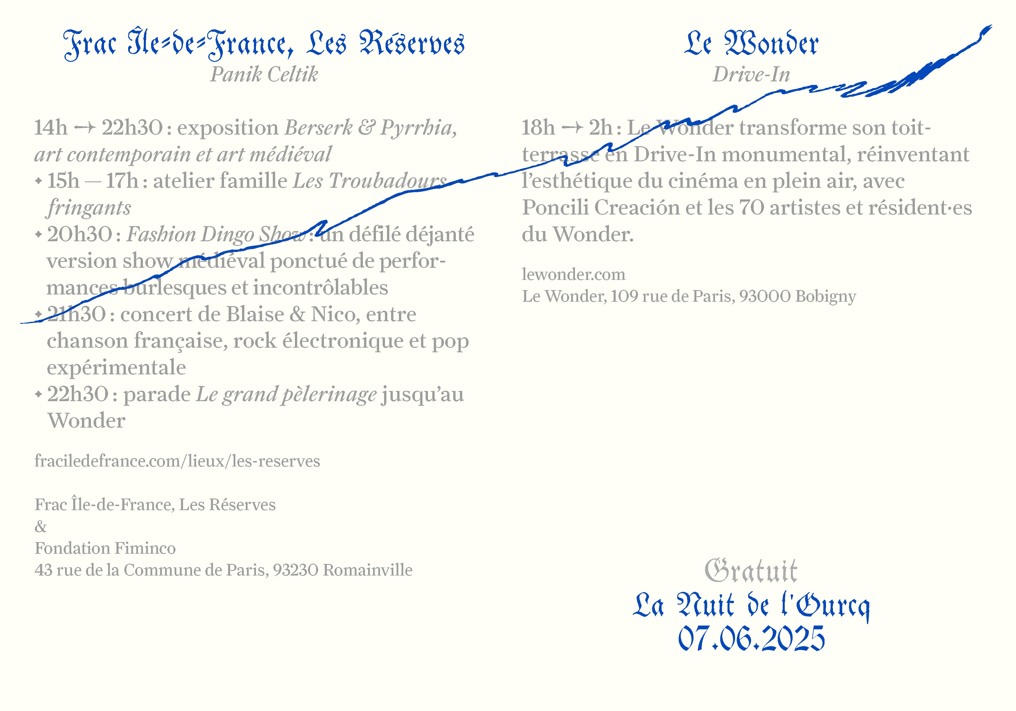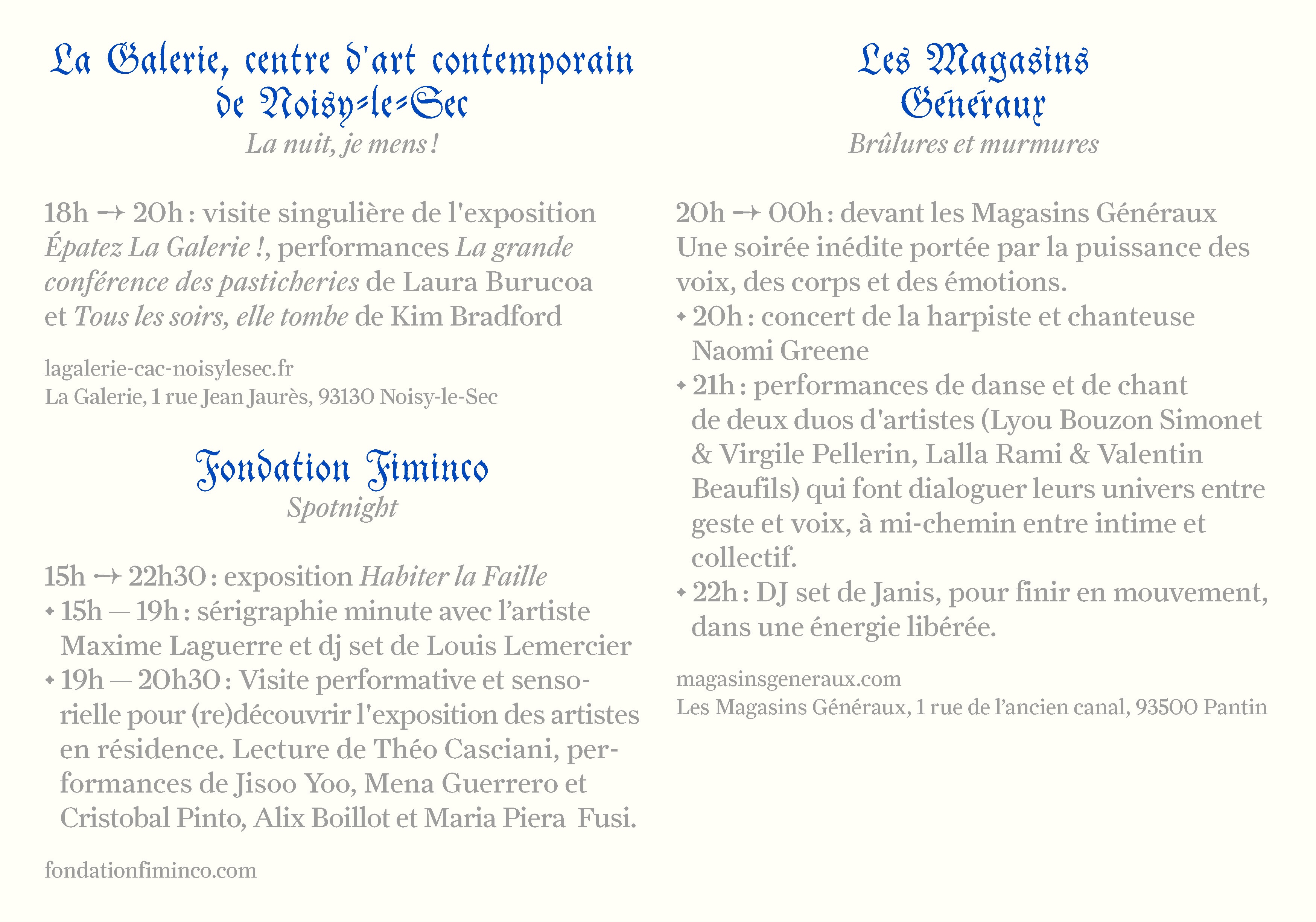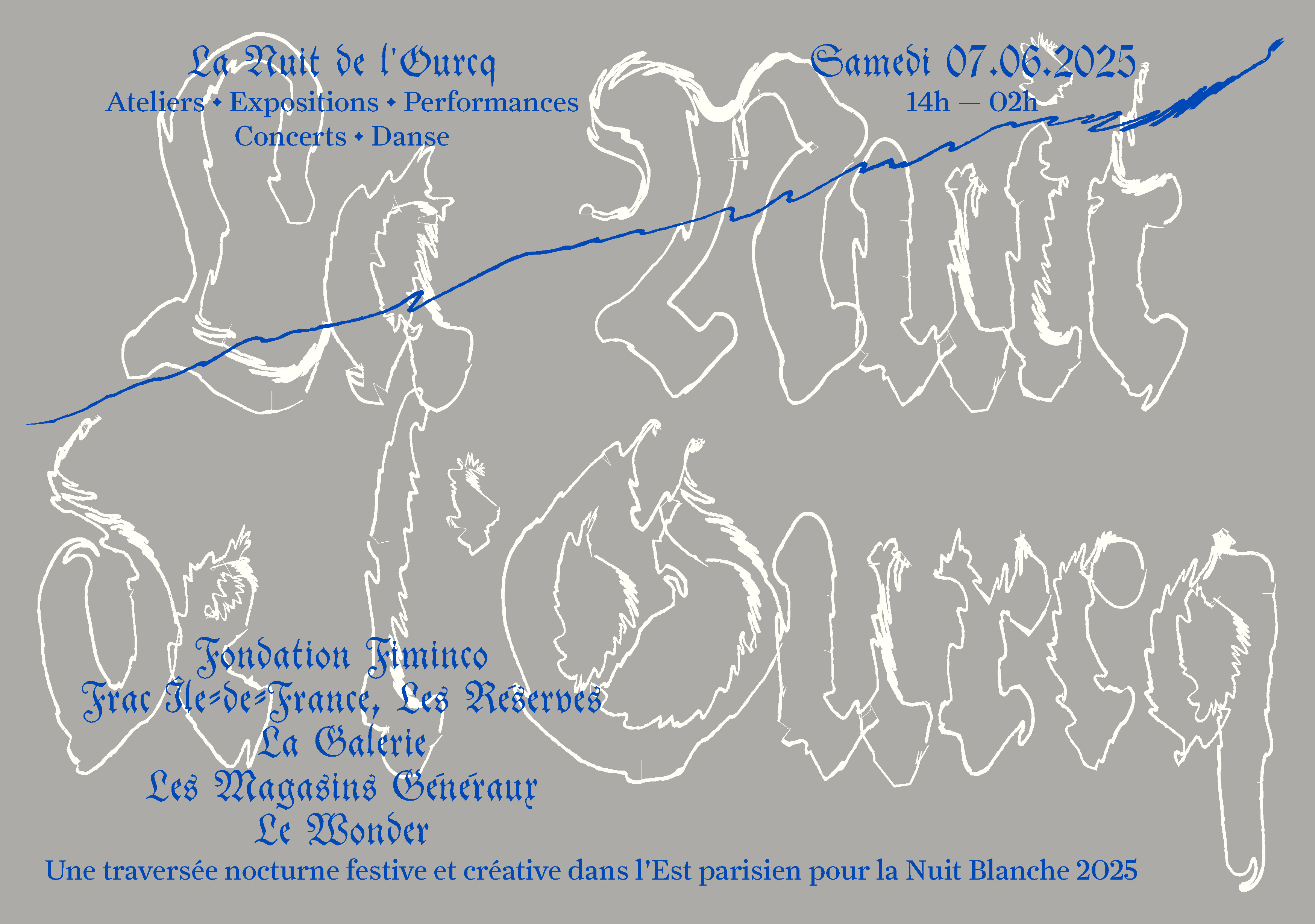 A festive and creative night-time journey through eastern Paris for Nuit Blanche 2025, in partnership with Fondation Fiminco, La Galerie, Les Magasins Généraux and Le Wonder.