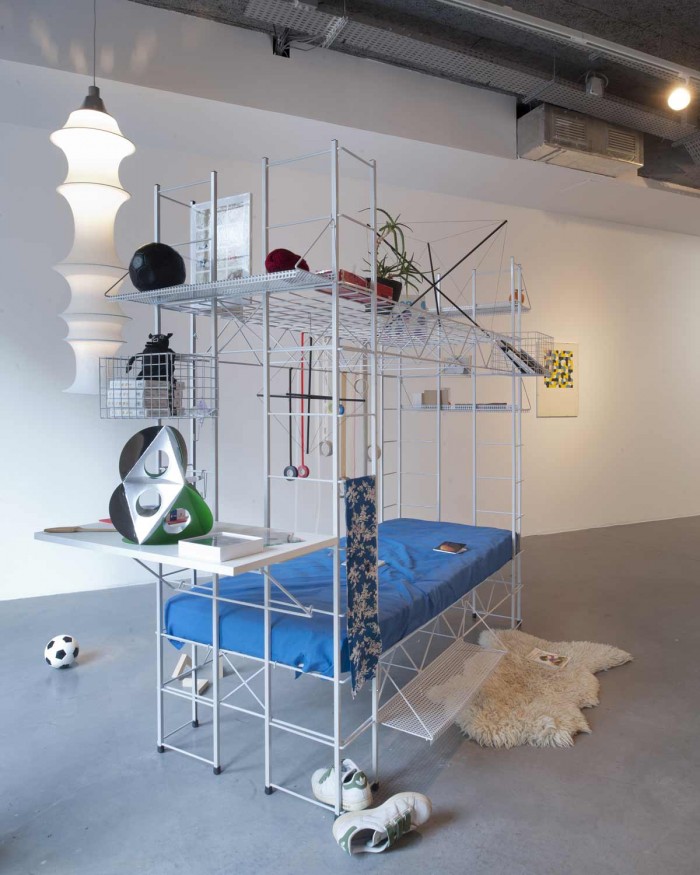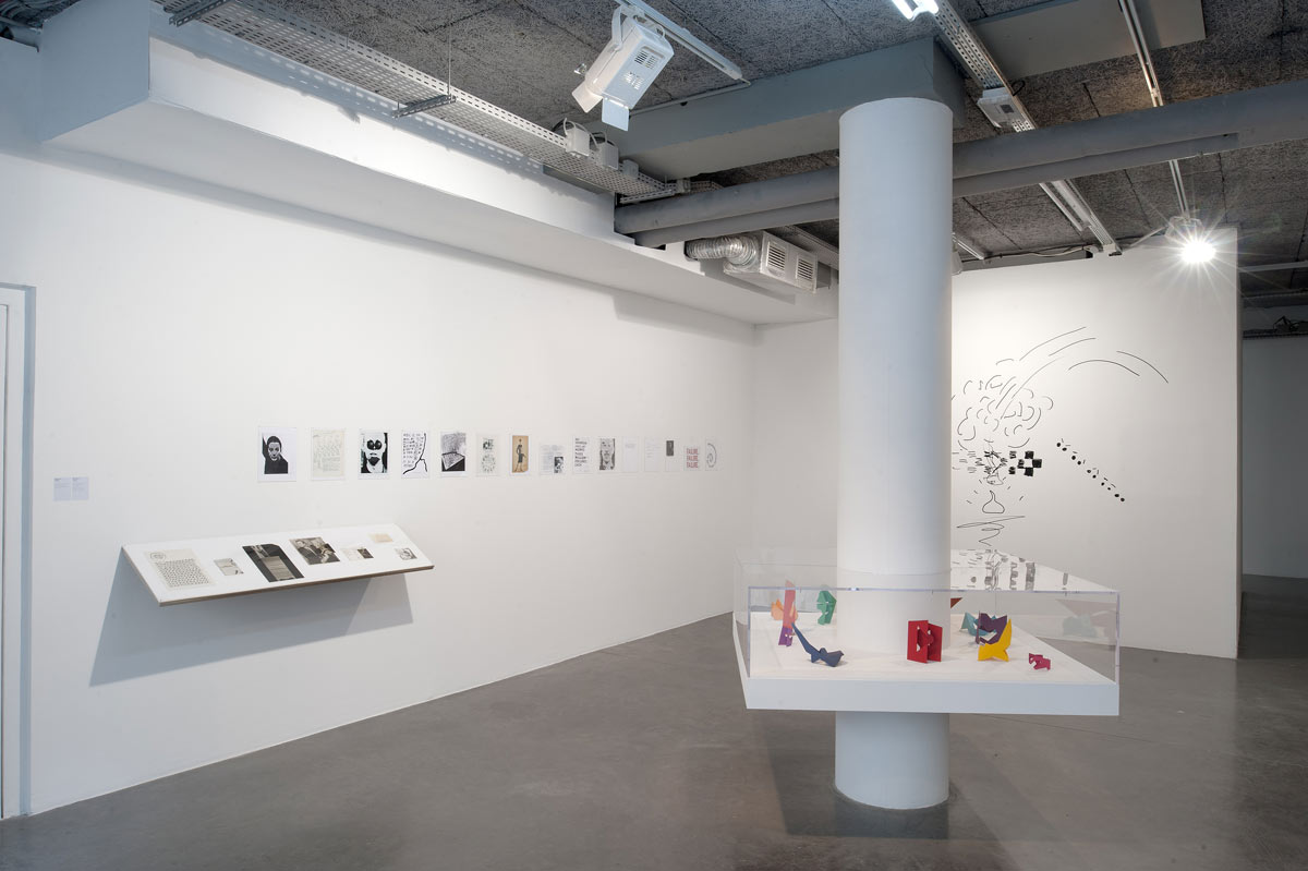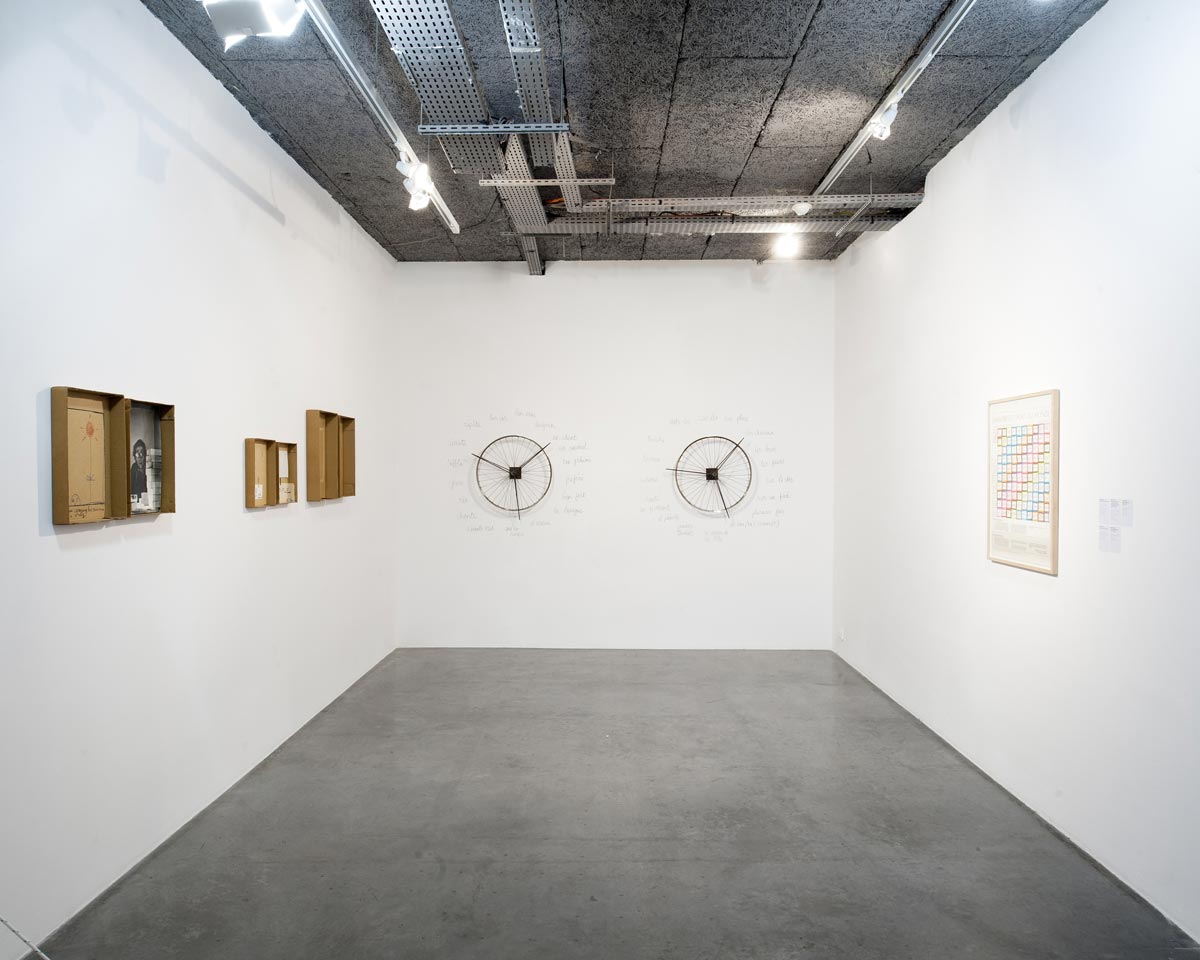 Constructing and then dismantling a wooden pyramid on top of a mountain, every summer for ten years, and waiting for a lightning to strike it; sending daily collage letters to friends and strangers; carrying a gallery under a hat; reproducing a camera movement with the help of abstract paintings; building a house on the bases of a conversation; producing wall drawings with the help of a football; making sculptures with yarn to take on journeys with – these, then, are just some of the gestures and works one can come upon in this exhibition.