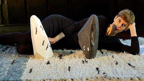 The Good, the Bad, the Happy, the Sad (2014) evokes the world of a collector’s living room and features two sculptures, ‘The Good’ and ‘The Bad’. They converse amongst themselves and question their nature, their transition from the artist’s studio to their owner’s private domain. With this particular format, hinging on a precise script, the forms are part of a narrative and dynamic process with a humorous and witty tone. Wishing to engage collaborators in her pieces, Hedwig Houben hands over the development of the performance to the collector Joseph Kouli.
