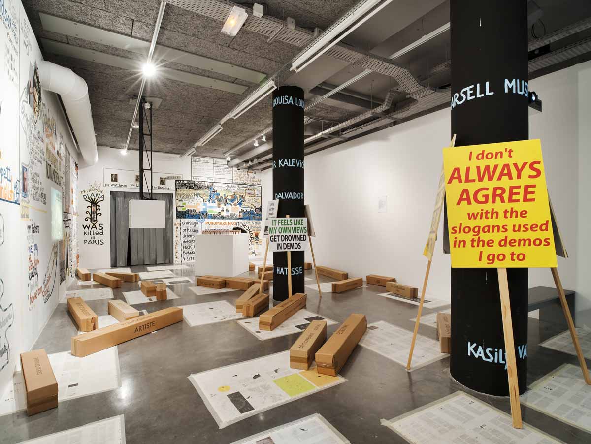 Be they artists, researchers, middlemen, or jurists, their forms are subject to the necessity and urgency of a message to be got across rather than any stylistic determination. Nor is it a matter of denying the effectiveness of the form; what is involved on the contrary is the assertion of “functions” not to say missions. Echoing the idea of profound erudition, turning into hybrid forms, the exhibition thus unfolds different strategies for writing facts, which, based on practical reason and a political and militant will, sometimes end up tending towards the poetic and the lyrical.