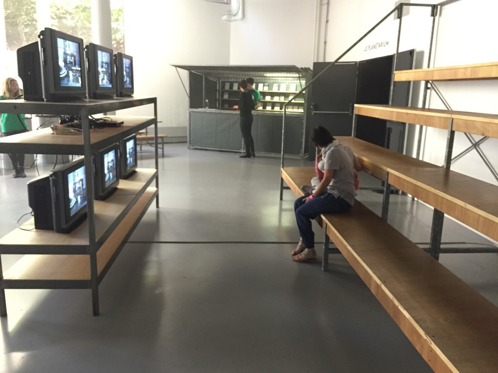 Fabrice Gygi’s Vidéothèque mobile is made out of simple elements (benches, rows of seats, monitors…), which easily create a resource and meeting space. It is a modular and itinerant space/video library in which the public can choose from a large number of videos and watch them alone, in pairs, or share them collectively from the tiers. The Vidéothèque mobile provides a space of thought and experience for the viewer. It will be open to the public an hour before and after the shows, or by appointment.